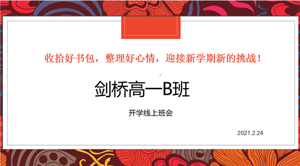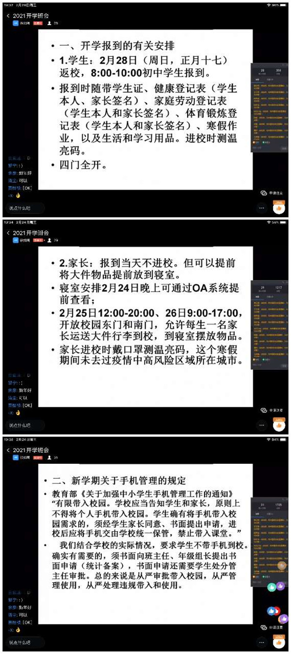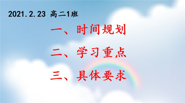 2021农历新年的喜庆还未完全散去,新学期的脚步已经近在眼前。2月22—24日,高二年级各班班主任认真准备,组织召开在线班会课,迎接新学期的到来。