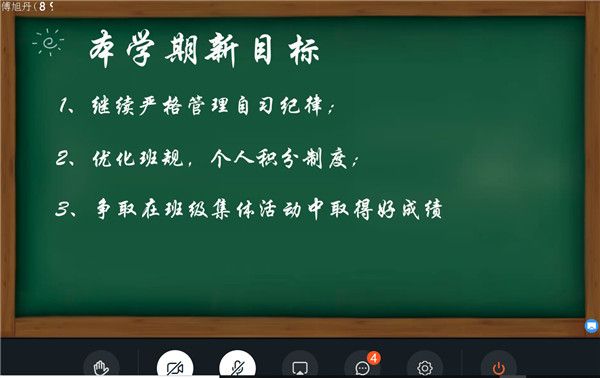 通过本次线上班会课,同学们加深了彼此的联系,相互分享,相互学习,同时也借此机会了解了开学事宜,以崭新的面貌迎接新的学期,争取再创佳绩。
