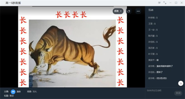 首先,班主任潘老师对班级上学期的整体情况进行了简要的总结,特别表扬了上个学期每位同学在班级优良学风的形成和团结友爱班级氛围的营造上所做出的贡献,同时也对新学期班级的发展提出新的希望和更高的要求。潘老师还用“牛”气冲天的图片配以18个“长”字的对联对全体同学在2021年新学期作了展望与祝福,希望大家能踏踏实实地投入学习和生活,带着一股韧劲,在方方面面取得长足和持久的进步。