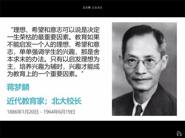 作为结语,王老师介绍了如“追光的人”沈亦晨学长和从生物医学工程专业到电影专业的仇晟导演等一批批以梦为马,不负韶华的杭外学子,以教育家蒋梦麟先生“启发理想”的话为总结,又再次强调手机管理制度以及咱们班的新学期目标,激励大家坚定理想,寻得兴趣,同时脚踏实地,步步铸就自己的道路。