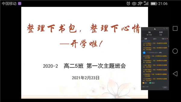 2月24日下午4:30,高二3班准时开启新学期第一次线上班会。