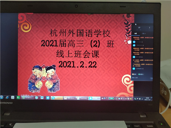 日月其迈,时盛岁新。在春节的尾声里,崭新的学期前,我校高三年级同学在班主任老师的组织下迎来了2月22日晚上的线上班会课。学校通过线上班会的方式安全、高效地传达出对学生的重视与关怀。