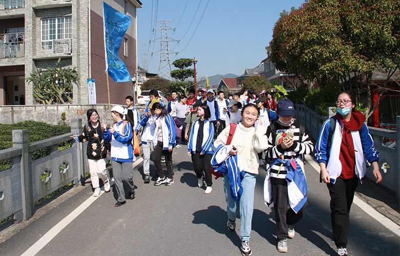 同学们所走过的地方都留下了杭外人乐观、自信的影子。一路上,同学们边走边感受乡村的宁静与精致,欣赏龙井的翠绿与芳香,也忍不住赞叹美丽乡村建设的成果。当然,同学们整齐的行进队伍和良好的文明素养也给当地群众留下了深刻印象。