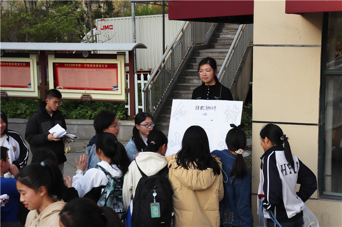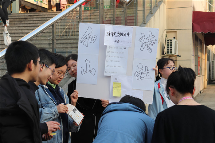 先看【和山诗社】,诗社的负责人是高一(3)班的谭嫣然同学,据她介绍,这一次社团秀的主要活动就是诗歌接龙和明信片的分享,旨在激发同学们对于诗歌创作的潜在兴趣。尤其是颇具创意的“诗歌接龙”环节,可谓是将同学们的才思跃然纸上,颇有一番以诗会友的情致。