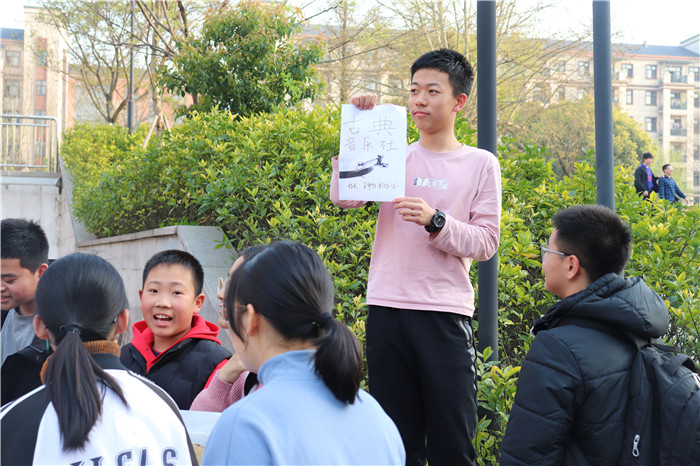 特别值得一提的是本学期新创立的【Spin Around古典音乐社】。对于社长是初三(6)班的王畅同学而言,这实在是一个不可多得的宣传契机。王畅同学从小便对古典音乐有着浓厚的兴趣,创立社团也是一年多前就有了的念头,在这个学期终得实现。所谓“创业艰难百战多”,社团初期的成员人数尚未发展壮大。因此,尽管这周王畅同学身体欠佳且事务缠身,但仍然坚持亲力亲为策划出题。这一次,社团的主要活动是古典音乐名家的明信片放送以及知识答题。知识答题共分为三大类型:选择题、听力题、试唱题。王畅同学表示,这些题目均由自己所编,并且正确率达到了他所未料到的高度。另一个在社团秀的意外收获,就是发现了很多对古典音乐感兴趣的同学,并且招收到了不少新社员,这下再也不会感叹“知音”少了!社团的一众负责人也都表示,打破大家对古典音乐的刻板印象并激发大家的兴趣,正是他们的初心。