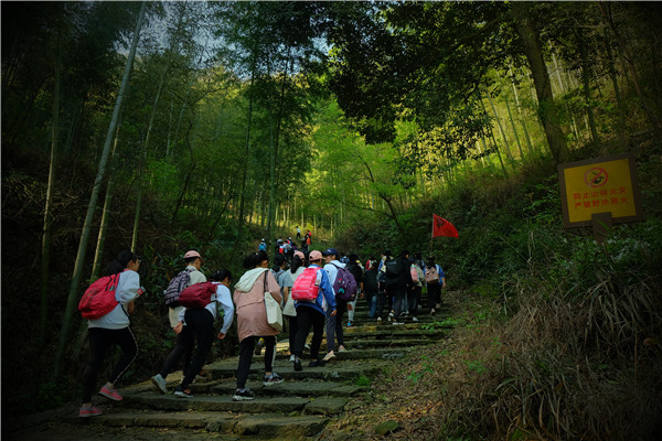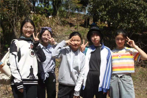 山路的确是难走的。进入西山公园后,队伍的行进速度逐渐慢了下来——崎岖不平的山路在竹林的掩盖下似乎没有尽头。跑得快的同学早已不见人影,体力不支的则落在队伍末端。但在同学、老师和学姐学长的鼓励下,我们不断向前,一座座山头也终落在身后。
