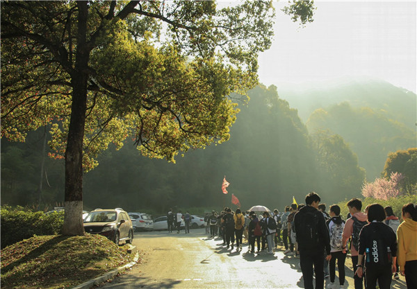 归程的时候太阳高悬着,来时同学们下坡的快乐变成了漫长的毅力的考验。有些同学开始双腿酸痛,步伐越来越沉重。意志力一次又一次地提醒大家“全程还有1/2!”、“不可以放弃!”,同学们也互相搀扶、互相激励、互相给对方坚持到底的力量。