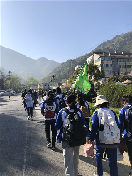 连续几周的阴雨天后,终于迎来了晴天,我们也迈出了春游的步伐。与小学的春游不同,杭外的春游是徒步旅行,一看到这行程图线,大多数同学吓了一跳,这不是春游,是长途跋涉、翻山越岭,甚至可能是一些人十几年来一次性走得最远的路程。不过好不容易有了这次春游的机会,可不能错过了,同学们仍然热情高涨、囤够了干粮,蓄足了精力,盼着初中的第一次春游。