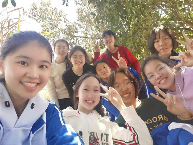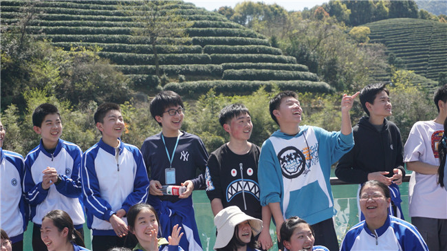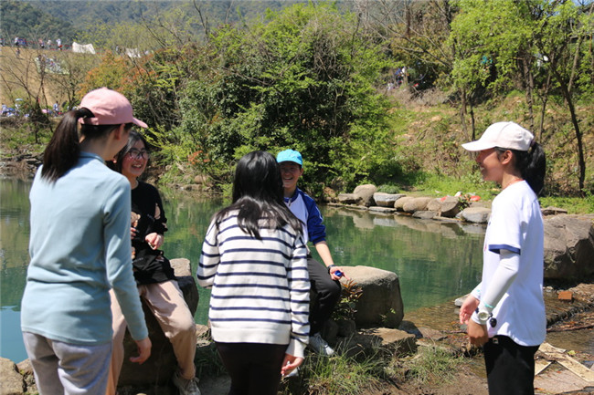 上午十点半,大部队成功登顶,在西山何家村茶园山顶上,享受着明媚的阳光和和煦的春风。同学们在驻地安坐下来,分享美食。三五成群,或游戏、或读书、或作画,小摄影师们捕捉各种自然美景和人物抓拍。