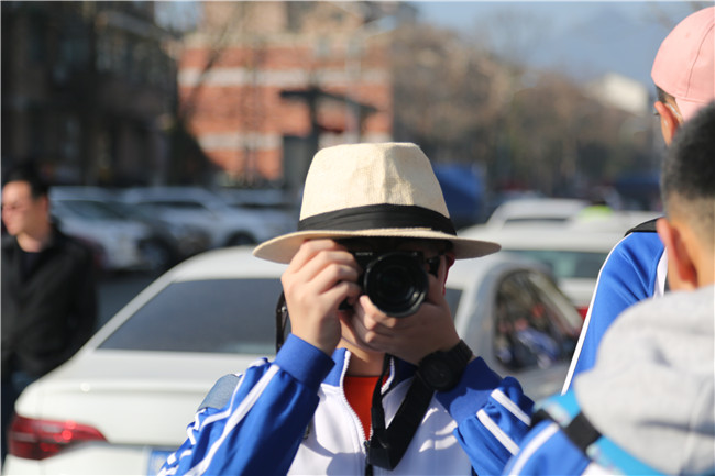 身边有同学说说笑笑,开始时有些乏味的路途也轻松了不少。沿途走过一段居民区,街道两旁的行人饶有兴味地看着充满朝气的我们。形形色色的店铺招牌成为了我们津津乐道的话题。谈笑间,有些同学忽然发现,这样慢下来行走在街巷中,竟然能发现许许多多以往从未注意到的事物。