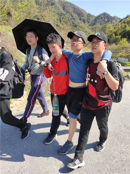 因为各个组的同学体力不同,班级的队伍被拆散。但所幸,各个组的同学依然紧紧联系在一起。我们组的同学们相互扶持,从未抛弃任何一个人。守护,是在同学体力不支的时候小组成员的搀扶,是互相照应的步子,是我们一直在彼此身边。