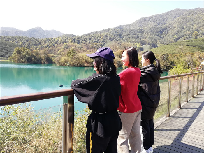 非常荣幸组队成为我班三位代表团的成员,本次春游也被载入刘同学《人生中不可多得的奇特出行》。日均三万步,这可能是我们日后都将无法超越的传说了。和伙伴们一起在樱花树下玩卡牌,在茶山小径间摸索前行,在炽热的午后披着阳光,沿着斜坡气喘吁吁地向上攀登,这些都是从未有过的体验。耳机里放着Jay的歌,“薄荷色草地芬芳/像风没有形状”,入目皆是美景,彼此间关切和鼓励的目光,抚慰了我们一颗颗疲惫而焦虑的心。