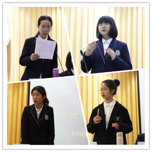 司法过程中,网络舆论为我们提供了普通民众基于道德的对司法过程的看法。然而,当这种看法已经影响到司法过程时,我们不可不警惕其隐含的危险性。本次比赛就网络舆论对司法公正的影响进行了辩论,双方客观分析了网络舆论的积极作用与消极作用,并且对网络舆论固有属性进行了探讨。在思想的交锋和张俊峰副校长、阮小蕾老师的点评中,我感受到了法治的力量,也认识到了自己的虚浮、虚伪和虚荣。作为杭外唯一的法学社,希望能够继续举办法治辩论活动,让更多同学认识到法治的力量。