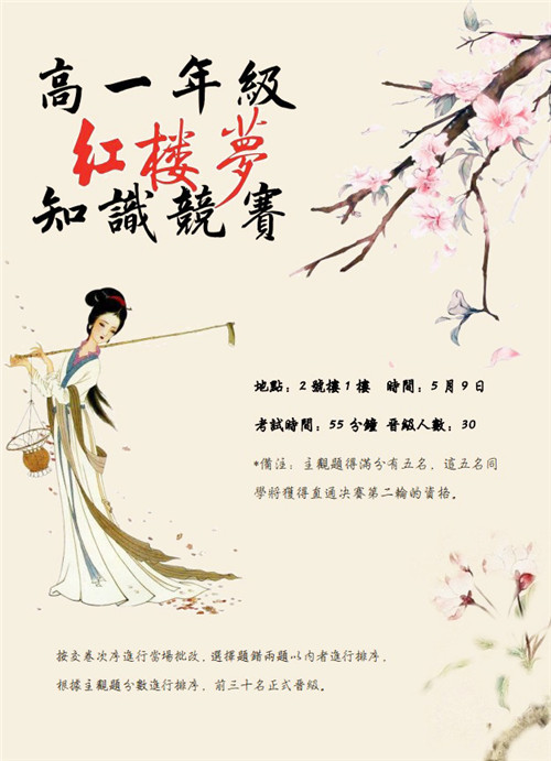 我们与《红楼梦》颇有渊源。早在初三的暑假,语文组老师便向我们推荐了脂评本《红楼梦》;而高一的寒假里,同学们以人民文学出版社的《红楼梦》为准,对前五回作出了摘评,并各自认领了三到五回的内容,据此设计五道左右的题目——这也是这次竞赛题目的主要来源。这只是教学中的要求。作为中国古代四大名著之一的《红楼梦》,很多同学大概早在小学二三年级便有所接触,对其中的人物关系和主题都有了一定的了解。所以,在这次活动中,我们不仅有以年级为单位的知识竞赛,还有以班级为单位的、持续整个高一下学期的“红楼讲坛”,让同学们一起细读每一回,表达自己对其中各个细节、人物或背后故事的独到见解。在聆听和表达的同时,同学们也开拓了阅读的思路,加深了对《红楼梦》的了解。