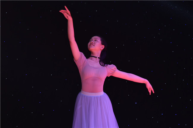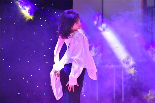 决赛正式开始了,第一轮是solo环节,有来自初中、高中本部、剑桥高中的共九位选手。徐圣洋、林非宇、顾思芸、龚依凡、刘轩可同学带来了精彩纷呈的韩舞表演。其中,刘轩可同学表现尤为出色,她的舞蹈极具故事性,将印度舞姿与现代流行音乐完美结合,为表演蒙上了一层神秘的东方色彩。顾思芸同学的舞蹈动作干净利落,配乐欢快活泼,整体完成度高。而周俊涛同学作为全场唯一的男选手,更是让人眼前一亮。中国风的前奏,熟练精湛的动作,“帅”到了在场的许多观众。紧接着,画风一转,周俊涛同学又扮上了女装,跳起了宅舞,尖叫声盖过了音乐声,“燃”翻全场。作为另外一位街舞选手,一身白衣的黄蓉儿情绪到位,用动作和眼神述说着故事。决赛现场除了有现代流行舞蹈,还有来自中国云南等少数民族地区的中国民族舞。胡璟艺同学表情十分到位,将中国古代大家闺秀的含羞诠释得淋漓尽致。来自初三年级的贾雨涵同学则带来了芭蕾舞表演。小踢腿,擦地,画圈,旋转。在悠扬的弦乐声中,飘扬的裙带与贾雨涵同学优雅的气质相结合,让人的身心逐渐放松下来,沉浸在这场音乐、舞蹈与形体美的盛典中。