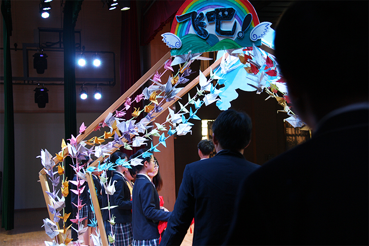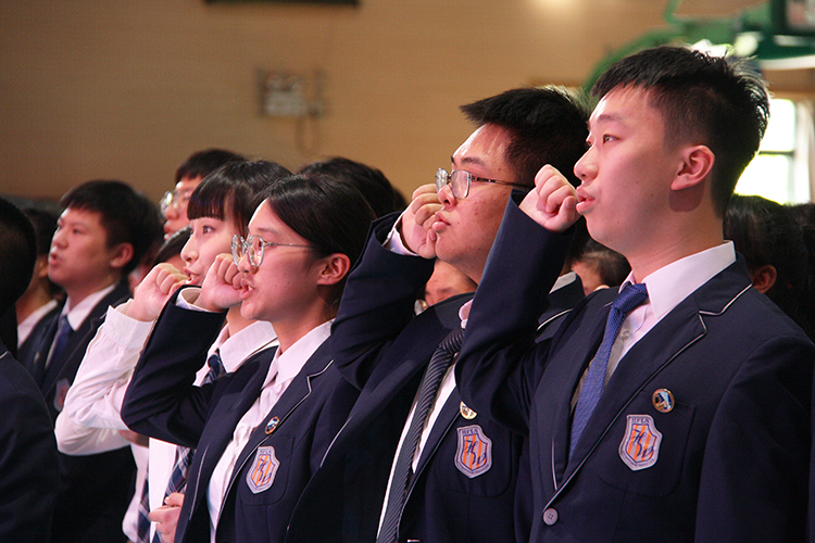 随后,高三同学们排队上台穿过成人门,领取成人徽章,并进行集体宣誓。一句句简短有力的誓词传达出了同学们对于步入成年之门的激动与期待,更蕴含了他们敢于争先、勇于担当的决心。