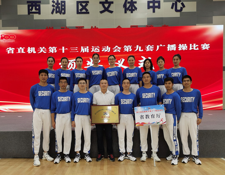 5月13日下午,浙江省直机关第十三届运动会广播操比赛在西湖区文体中心隆重举行。来自省直机关、省事业单位的63支代表队参加比赛。由我校17名教师组成的广播操队,以整齐的动作、饱满的精神和昂扬的斗志在参赛队伍中脱颖而出,最终代表省教育厅获得了第11名的好成绩。