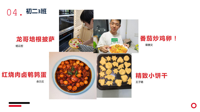 五一期间,学校开展了在家烹饪体验活动。同学们大展身手,有的做了自己的拿手好菜,也有同学挑战自我,制作了以前从未试过的菜式。在上交的美食视频中,我们看到了同学们不为人知的另一面:平时大大咧咧、不拘小节的人拿起菜刀来,每一个步骤都做得异常细心;理科男在自家厨房里竟是一名甜品师;文艺女孩举起锅铲就是一顿翻炒……大家制出的菜更是五花八门,从家常版蛋炒饭、番茄炒鸡蛋到高级的烤里脊、蛋挞等,同学们的隐藏技能展现得淋漓尽致。在这次活动中,大家不仅收获了一顿美味的饭菜,更体验到了烹饪带来的快乐。自主烹饪带来的满足感,也是无可替代的美好。