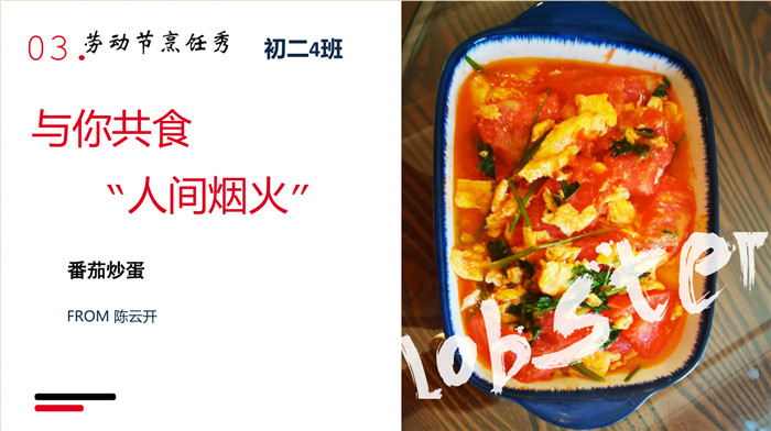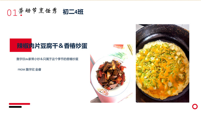 高尔基说:“只有人的劳动才是神圣的。”五月,春夏之交,不仅是劳动的时节,亦是各种食材蓬勃生长的节气。值此时节,同学们做了一件很小很特别的事——“学会做一道菜”。