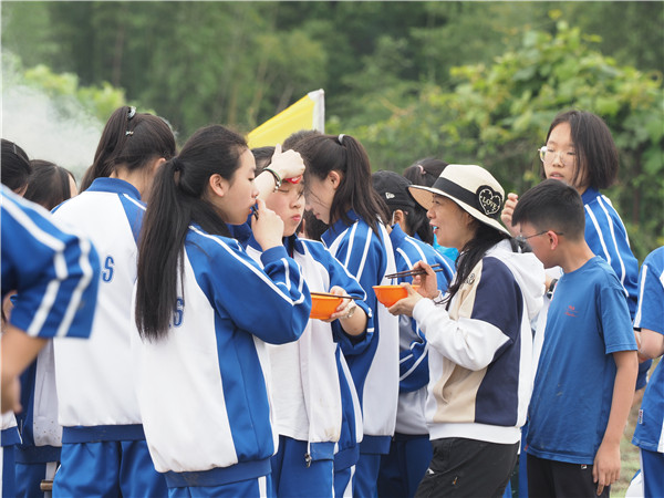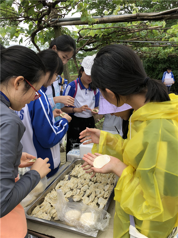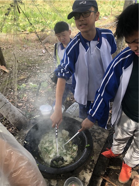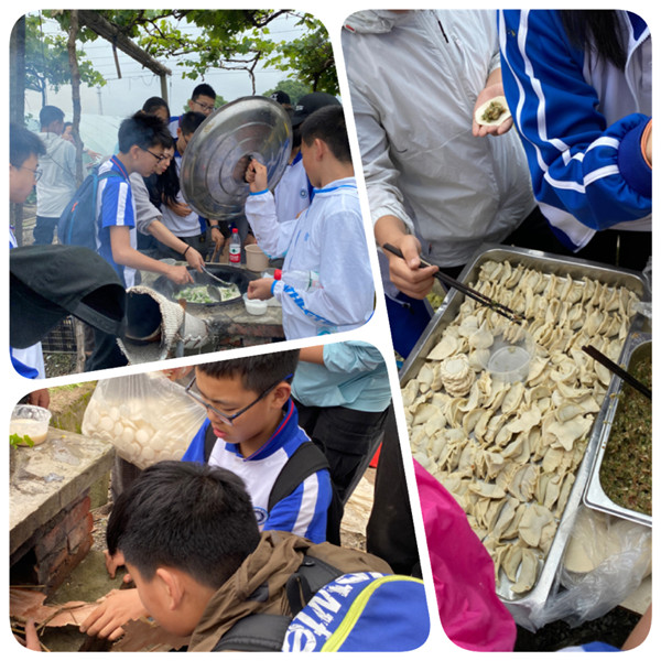 最后我们开大灶,自己做菜烧饭。部分同学洗碗刷锅、洗菜做馅,开启第一步;部分同学拾柴生火,解决能源问题;女生们包饺子,各式各样,秀气十足;男生们起锅掌勺,有板有眼,俨然像胸有成竹做实验的科学家。浓浓白烟升起,大家围在温暖的灶台旁,享用着自己精心付出的成果。看到同学们通力协作、相互关心,慷慨分享之时,我总为之感动,我们近两年结累的同学情谊,在户外学农中尽情释放,在欢声笑语中,我们短暂的学农活动落下帷幕。