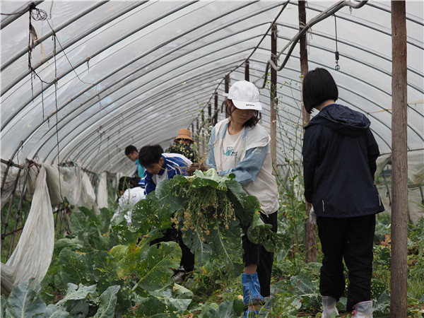 杜双彤:Surprisingly, doing farm work isn’t as stressful as I thought. I felt much more relaxed while I was working with my classmates. The cabbages weren’t too difficult to pick when we worked in teams. And we enjoyed tasting the delicious food our classmates made. Unity and labor makes me pleasant.