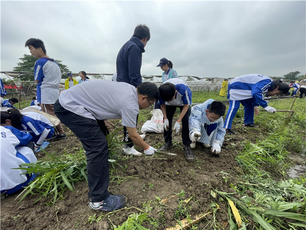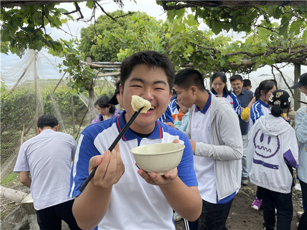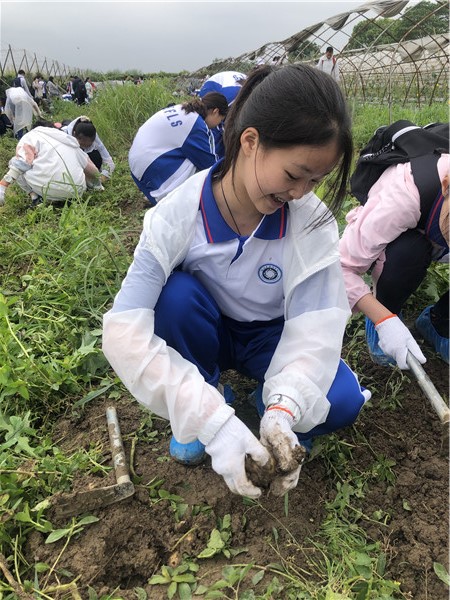 吴欣桐:学农的过程中有很多事情都需要多人合作,比如拔起扎根得很深的豆蔓、包饺子、炒年糕等等,要是其中一个人没做好,整个产业链就会被影响。我们不过干了一个上午就收工了,也不能说体会到了早出晚归、日复一日的劳动人民的感受,但多少还是觉得就算是种田烧饭也不是什么容易的事情。劳动者们不论是养家糊口还是奉献祖国,都是非常了不起的。