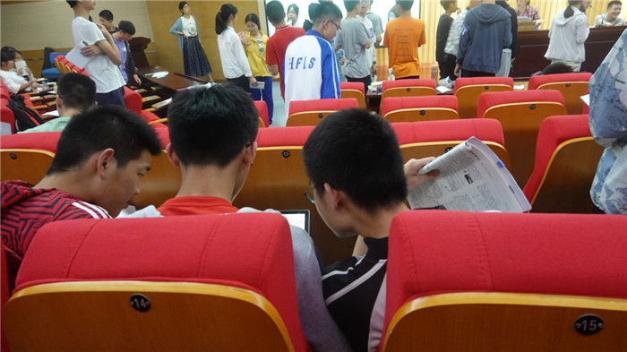 第二项是小组赛。全新的形式考验的不仅是个人的水平,更是小组成员间的合作互助;抢答的赛制惊险刺激,不仅是思考速度,手速同样关键。题目放出来以后,同学们在台下激烈讨论、争辩,得出答案后便迫不及待地举起手。