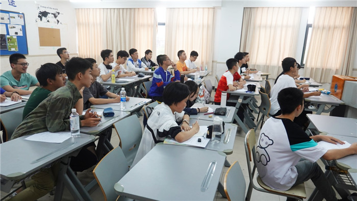 第二天的决赛在小教室举行,前一天初赛中位列前40%的同学早早地来到了决赛现场。相较于初赛放松自如的“游戏答题”形式,决赛采用了五道一批的形式进行对选手数学能力的测试,限定的时间,颇有难度的习题,这一场与高考模拟题、AMC竞赛硬碰硬的盛宴让同学们再一次陷入了“考试”的美妙时光中。即使临近晚自习,选手们的兴致也丝毫不减,反而愈来愈烈。