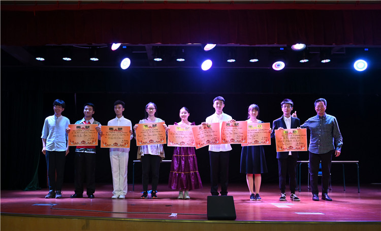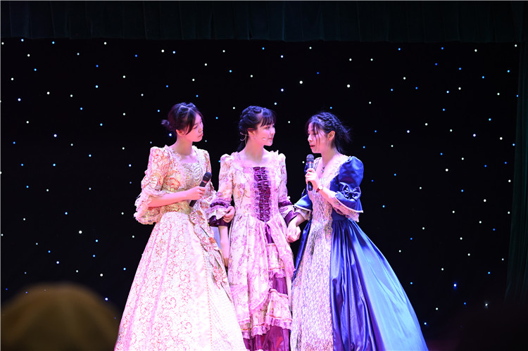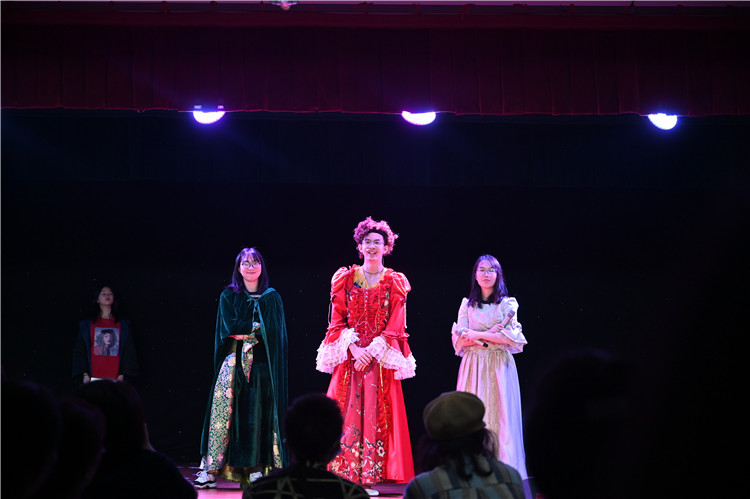 四位主持人简单的开场后,五班的Romeo and Juliet率先拉开了此次活动的序幕。经过改编的《Romeo and Juliet》比原著多了几分诙谐,赋予了不同于悲剧的轻松,但依旧将“永恒的爱”这一主题深切地传达给了观众——伟大的爱是可以超越一切的。二班的Snow White则以反串的形式给了同学们一个很大的惊喜,一上场就点燃了全场的气氛。三班同学带来的And then there were none选取的是整个故事的开头:十个互不相识的人、一台来历不明的收音机、一段骇人听闻的指控,使全场观众的心都提到了嗓子眼。第一位来宾突然死亡,故事戛然而止,顿时是雷鸣般的掌声。