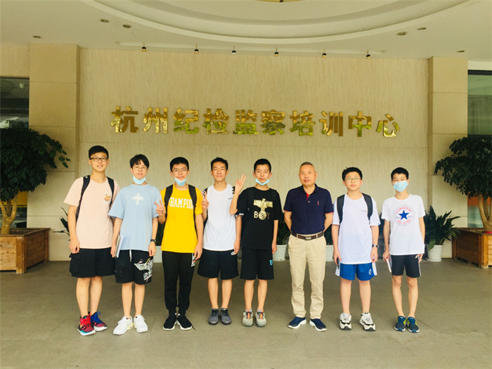 (中共中央纪委杭州纪检监察培训中心李爷爷与杭外学子单泽洲、富凌浩、李晟赫、杜泽涛、张译天、汪杨骏豪、谭皓羽合影留念)