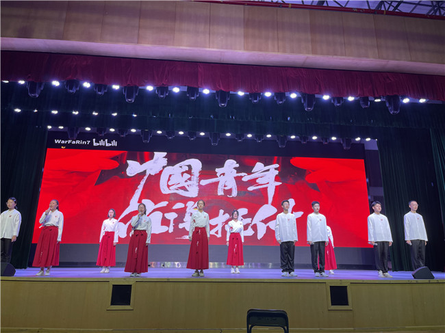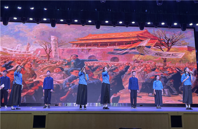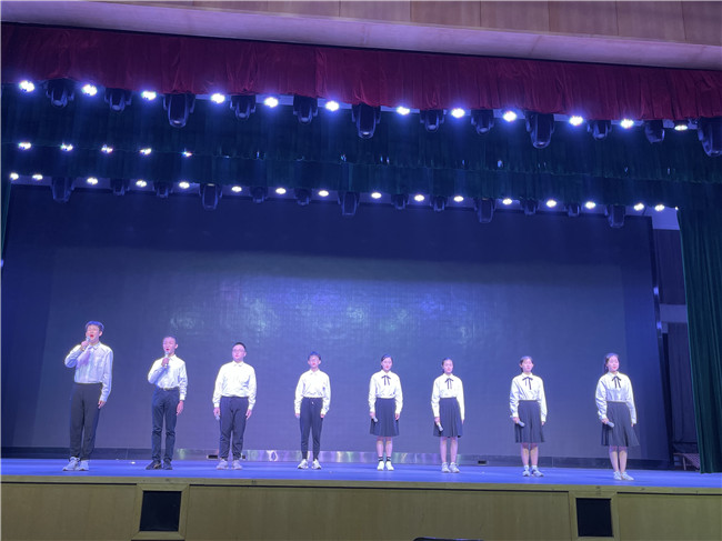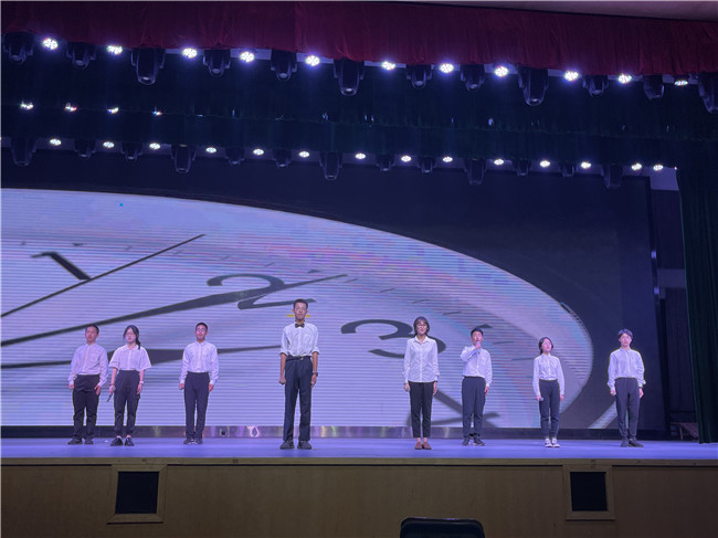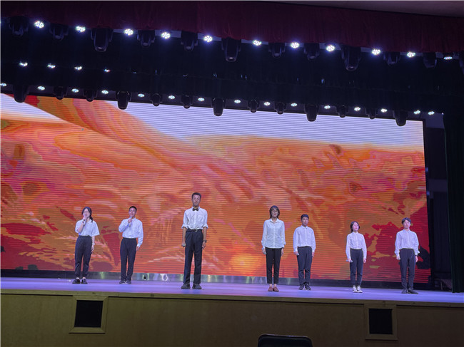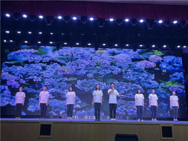 七点,音乐奏响,灯光亮起,李烨豪、胡舒妤、王乐鸣、刘思仪四位主持人激情洋溢地为比赛拉开了序幕,每个班的同学都在舞台上展现了独特的风采。高一6班慷慨激昂的《寻李白》,把那个浪漫狂放的李白带到同学们的眼前;高一3班感人肺腑的《青春组诗》,唤起了同学们对于青春的许多感动;高一8班令人热血沸腾的《不朽》,将那份坚韧和冲动展现得淋漓尽致;高一1班深情荡漾的《我的南方和北方》,将祖国大好河山以及深远广博的文化颂唱……八支队伍各具风格,声声传情,博得了台下观众的一阵阵欢呼和掌声。