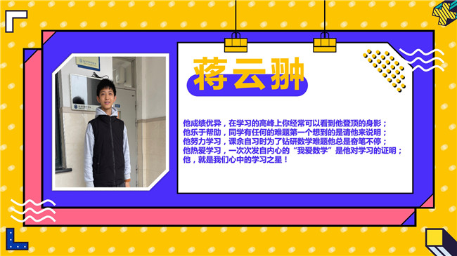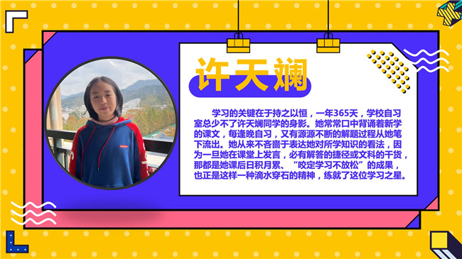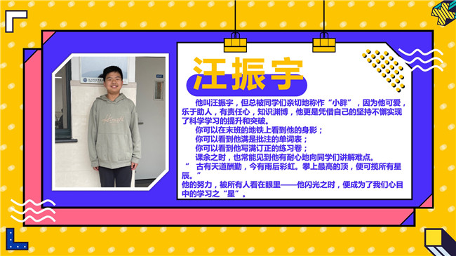 学习不仅是在课堂上的恍然大悟,更是渴望走出教室,走进多姿多彩的世界,探索它的奥妙与规律。希望同学们能通过“学习之星”的评选,领悟到各位学霸的战术秘籍,反思自己在学习中存在的问题,找到学习的意义和乐趣所在,知识的本身不就是学习最好的回报么。