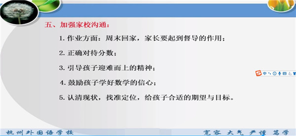 确定本次家长会改为线上后,年级组长和全体班主任老师认真备课,集思广益。大家将各方面的材料收集整理之后制作成精美的直播课件,各科老师也都结合学生的学习情况录制了内容充实的视频。