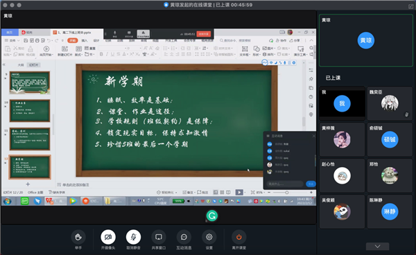 2022年2月12日晚19:00,高二6班的同学开展了一场线上开学班会课。经历了长达一个月的寒假,调整学习状态、树立积极心情,为开学做好准备,对于高二下的我们来说,是至关重要的。吕老师以“让优秀成为一种习惯”为主题,鼓励同学们不放松、高要求,做好规划,在抓住学习的同时,不放松各方面素质的培养。