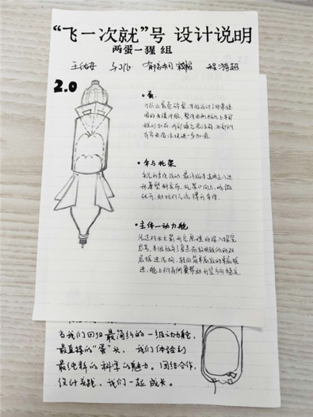 虽然从过程中收获颇丰、不留遗憾,但我们也努力寻找着结果失败的原因——上升时降落伞极大的阻力与本就不强的动力给虽然开伞后阻力大但开伞慢的火箭雪上加霜……这次比赛让我们组深刻领悟一个道理:比赛的成绩是对付出的肯定,比赛的过程能让我们各方面能力得到锻炼,收获更多。