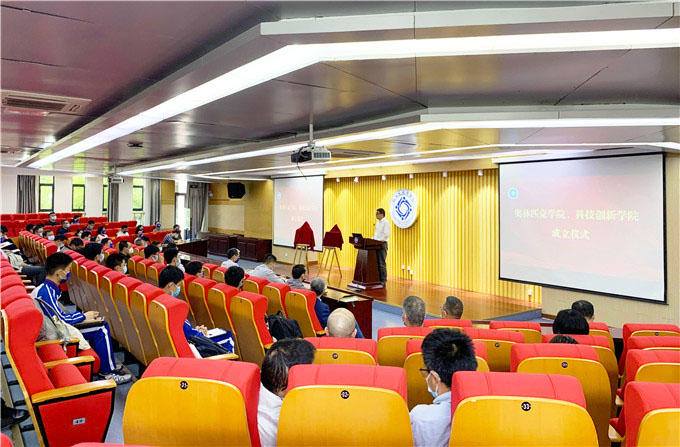 4月22日下午,我校在2号楼1楼报告厅举行奥林匹克学院、科技创新学院成立仪式。学校领导班子成员、有关中层干部、校学术委员会成员、教研组长、年级组长及“两大学院”指导教师、学生代表参加仪式。仪式由党委委员、副校长周华伟主持。