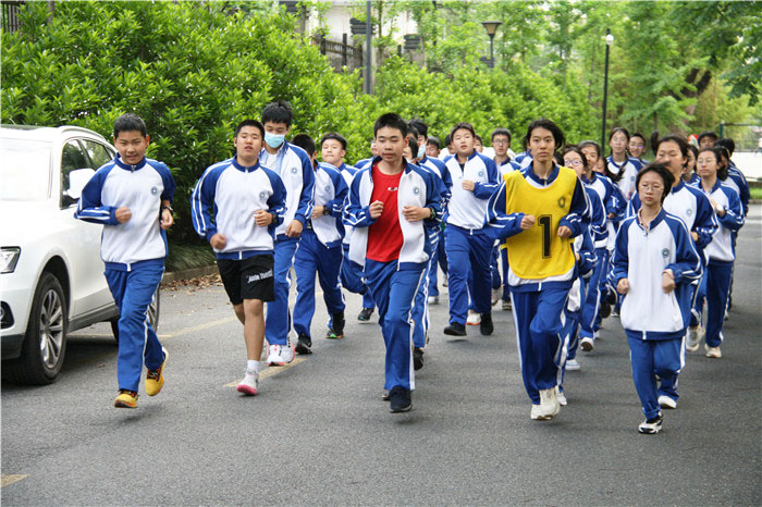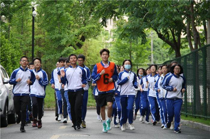 全校同学按班次出发,环校园一周进行长跑比赛。大家迈着年轻而有活力的步伐,整齐的队列与响亮的口号是独属于杭外的一道靓丽的风景线。虽然路途很长,但没有一个人掉队——所有人都团结一心,激情慷慨地奔向终点线——迎接他们的,是所有人热烈的掌声。五四长跑不仅仅是一次纪念活动,更是对杭外人精神的激发。红色的种子已经种下,必会在未来生根发芽,开花结果!
