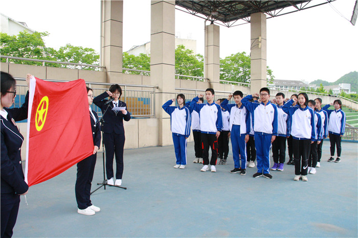 伴随着欢快的音乐,全校师生汇聚在田径场主席台前,排成整齐的方阵,观看活动的举行。升旗仪式结束后,首先进行的是初三年级新团员的团徽颁发与入团宣誓仪式。新团员们从团委曹莉老师手中郑重地接过团徽。在鲜艳的团旗前,新团员们在校团委委员申屠南北同学的领誓下,庄严宣誓:“我志愿加入中国共产主义青年团,坚决拥护中国共产党的领导,遵守团的章程,执行团的决议,履行团员义务,严守团的纪律,勤奋学习,积极工作,吃苦在前,享受在后,为共产主义事业而奋斗!”祝贺他们正式成为中国共产主义青年团的一员!相信他们这批新鲜血液的加入,会使我校团组织更加壮大和充满活力。
