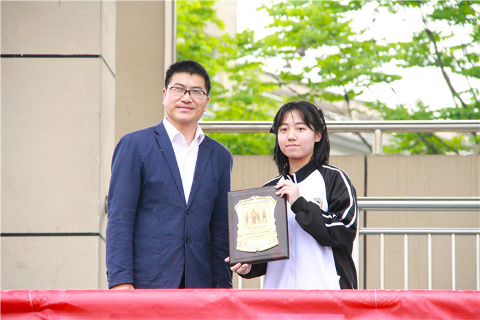 值得一提的是,为庆祝建团百年,传承红色基因,今年我校新设立了“周恩来优秀团支部”的评选表彰环节,旨在激励广大杭外学子牢记初心使命,树立远大理想,不断追求卓越。高一5班团支部以其优异成绩和亮眼表现荣获第一届“周恩来优秀团支部”这一殊荣。党委书记、校长王华琪为获奖班级颁发奖牌。