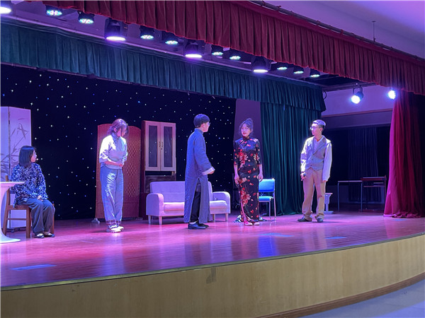 首先上场的是3D班的同学们,由沈鸿文同学饰演的周朴园尽显威严,张弛有度,极大地树立了自己在家中的地位,饰演周繁漪的朱恬宁和饰演周萍的石雨同学,将两人之间的嫌隙感与对周家的厌倦完美地呈现了出来,天真烂漫的周冲与单纯勤劳的四凤也分别由刘乐乐和陈汀同学贴切展现,还有贪得无厌的鲁贵也由刘济恺同学精准呈现。风暴的种子在周公馆内悄然萌发。