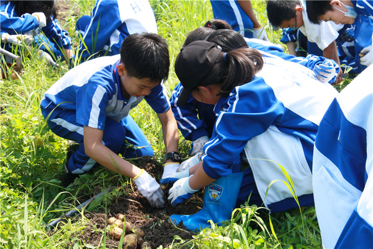 在初夏阳光的照耀下,我们迎来了进入杭外后第一次学农活动。使我印象最深的环节,莫过于挖土豆了。怀着对地下未知的土豆的好奇,同学们高效地展开了对土豆的寻找。随着时间一点一点推移,原本平整的土豆地变得“坑坑洼洼”,麻袋也逐渐鼓了起来。纵然辛劳,收获得喜悦也是不言而喻的。然而我难忘的是同学们在挖土豆时所表现出的合作精神。力气大的男同学负责用锄头挖掘和发现土豆,细心的女同学则负责把土豆从泥土中挖出,另外还有同学负责运输……在这样的合作之下我们班收获颇丰。