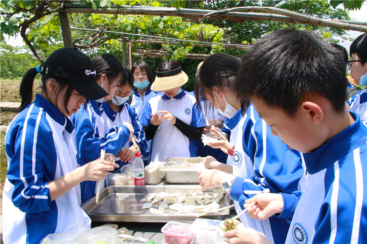 今日,我们进行了学农活动,虽然烈日当空,条件艰苦,但一切并未阻挡同学们的劳动热情,其中午饭野炊尤为令人难忘。我们十人需要快速包出400个饺子,虽然任务艰巨,但是我们把它变成了乐趣十足的游戏。大伙儿奇思妙想,合力包出了富有创意的“感动中国十大饺子”,或似大腹便便的掌柜、或似棱角十足的硬汉,更有那内涵丰富的四方饺子、软弱但坚韧的扁平饺子等,同学们每每吃到一个,都似开盲盒般充满惊喜。欢声笑语时时荡漾在田野间,艰苦的劳作让我们感受到充实,欢笑、汗水与团结协作是此次学农活动最棒的收获。