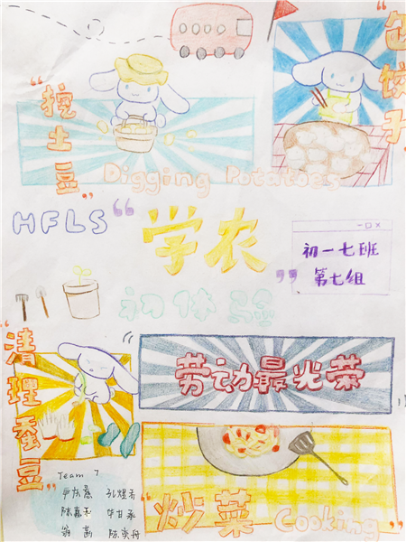 学农是给我们的一场磨练。我们也交出了完美的答卷。在潮湿、布满虫子的地里挖土豆;清理杂草丛生的蚕豆地、包饺子、炒年糕……这些我们不熟悉的事情给我们带来了不小的挑战。但我们没有一个人轻言放弃,没有一个人退缩,而是想着为集体贡献力量。野餐时我们做的创新菜就是我们创新劳动的最好体现。