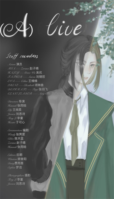 这次微电影的主题是“Every minute in life”。如此微小却又如此宏大的一个主题对同学们来说是一个不小的挑战。在构思初期,众多同学共同参与头脑风暴,我们热心的班主任Ms.Lu也在百忙之中腾出时间倾听同学的想法,并帮助同学理清思路。一部微电影的成功不是偶然,不仅需要一部好的剧本,还需要演员精湛演技的配合。然而,首次从幕后工作转任为演员,我在表演上并无经验。但是在导演的编剧者对剧本的耐心调整,精巧构思和细心讲说下,我们班的微电影拍摄渐入佳境。这次微电影的顺利拍摄离不开任何一位想法提出者,幕后编导者,后期工作者,离不开任何一位四班的同学。