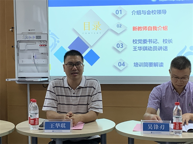 8月21日上午,我校党委书记、校长王华琪,副校长吴锋刃以及相关处室的负责人参加了开班仪式,教科室主任张传鹏主持开班仪式。王华琪校长热烈欢迎青年教师加入杭外这个大家庭,他勉励大家首先要认识自我,找到自身的优缺点,跳出生活的舒适圈,同时保持自我的判断能力,做好身边的每件事。人生很多挫折,而努力才会得到认可,奋斗才可创造价值。其次,要认识杭外,借助杭外这个平台,新教师要活跃开放,多与外界进行学术交流。能利用好杭外的优势,努力克服缺点,从而建设更加美好的杭外。最后,要认识教育,教育是爱与责任,多思考结合中外教育的长处,有助于实现人生价值与贡献。开班仪式上7位新教师作了自我介绍。