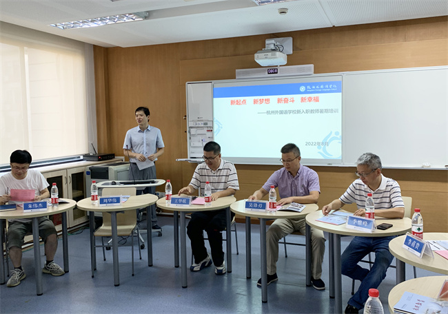 办公室主任李甫贵老师向新老师们介绍了杭外的办学历史与现状,与大家一起学习了学校有关工作制度。他强调,杭外是一所有着鲜明红色基因的学校,承担着历史使命与时代重任,着眼于培养有家国情怀、有全球视野、有深厚素养的祖国需要、未来可期的“三有”人才。他以“角色要摆正、工作要踏实、心中有追求、生活有质量”四句话与老师们共勉,希望大家尽快进入工作状态,翻开人生新的篇章。