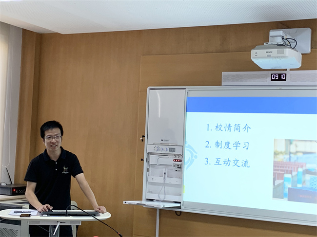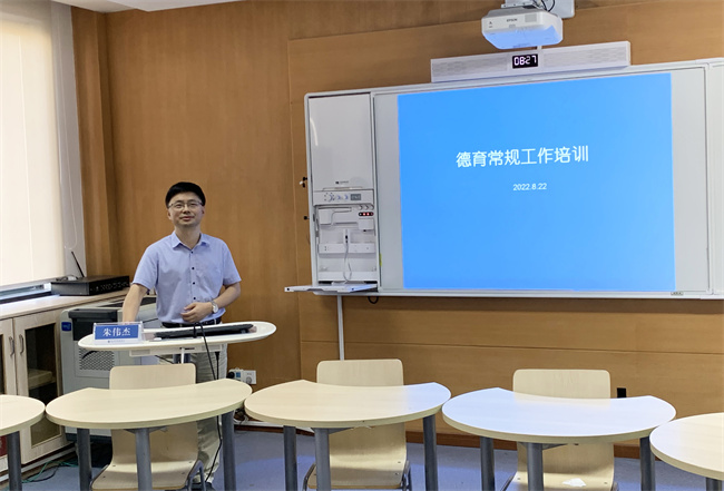 学生处主任朱伟杰老师以“立德树人,德育为先”开篇,强调新教师是学校德育工作的生力军,随后以“班主任与导师制”为切入点,详细地介绍了学校德育工作的特色与规范,勉励新教师们虚心学习、主动承担、勇于挑战、勤于反思,在“三全育人”中发挥自己的作用。