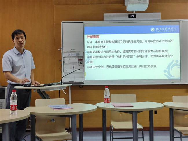 教科室主任张传鹏老师认为教育是教师的专业实践,不仅是自己讲明白、想清楚,更是让学生易接受,有兴趣,更想学,更会学。杭外呼唤学术型教师队伍,勤学习,善思考,会研究才能做好杭外的历史传承和当下使命。明白荣誉与责任同在,考核与激励并存。要加强学习,尽快适应,要具备“时不待我,只争朝夕”的意识,要脚踏实地,潜心钻研,反思自我。鼓励新老师做一个“学生瞧得起,自己心安,学校骄傲”,甚至是“历史铭记”的老师。