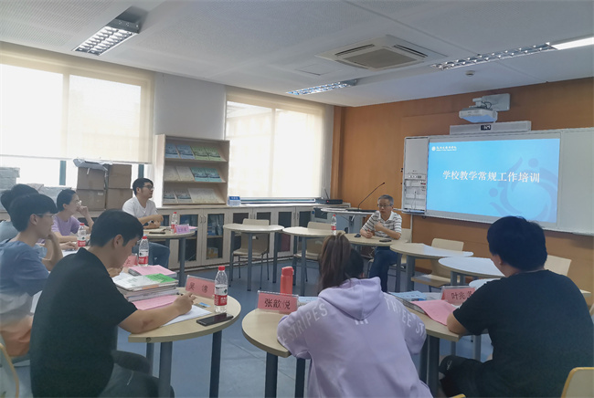 教务处主任李惟峰老师介绍了学校在备课、听课、上课、作业批改、命题和课后辅导等基本教学环节上的常规任务和要求,希望新教师们能够稳扎稳打,尽快站稳讲台。并基于新入职教师缺乏经验及面临身份、环境转变的特征,他从教学实施、师生家校沟通、学情认知和课堂管理等方面给出了系列建议,为年轻教师指明了教学发展方向。