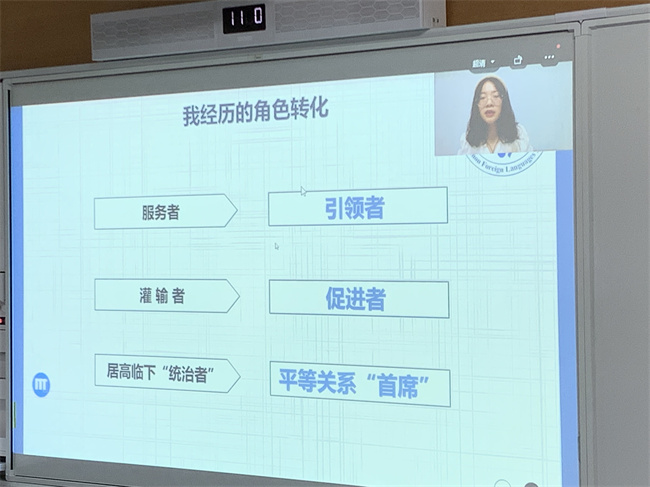 青年教师代表杨时雨和刘晶老师分享了自己的一些成长经验。杨时雨老师通过讲述她自己所经历的两个教书育人故事,向新教师们揭开了自己想分享的主题:但问耕耘,不问收获。从教学、教研以及德育三个方面强调新教师需要认真准备公开课、边做事边学习以及陪伴学生,为年轻教师提供了宝贵经验。刘晶老师从 “如何上自己满意的课”角度切入,详细地为新老师介绍了如何去准备第一课、公开课以及普通课,并且分享了自己在课后的一些教学准备工作,以及自己如何处理师生关系等,对新教师的顺利入职大有帮助。